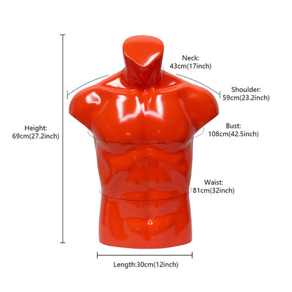 💖Male Half Body Size : Height :69 cm(27.2inch),Neck Base:43CM(17inch),Shoulder Width :59CM(23.2inch),Bust:108CM(42.5inch),Waist:81CM(32inch),Bottom Length: 30CM(12inch).