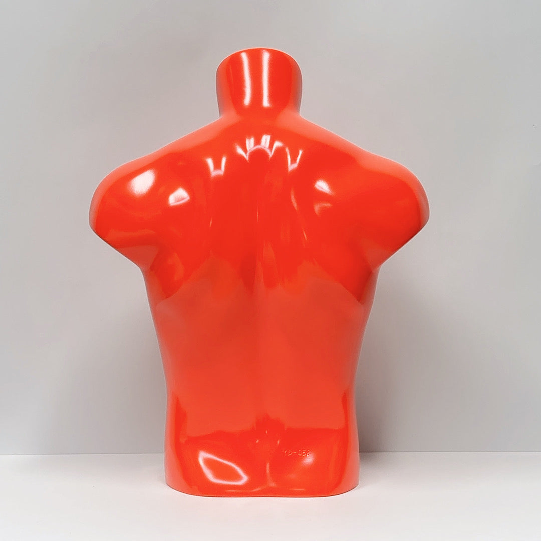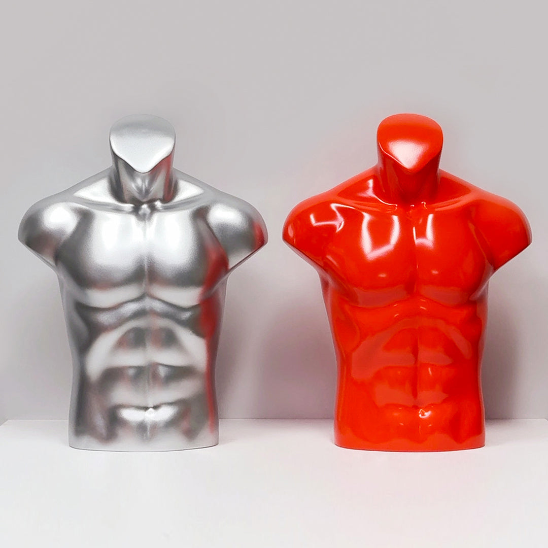 Elevate your boutique displays with this premium male half body mannequin, expertly painting in either silver or orange. Made from strong fiberglass, it offers both durability and elegance, perfect for showcasing clothing and accessories. The mannequin’s stance and modern color options give it a unique edge, making it ideal for displaying necklaces, jackets, or casual wear. Whether used for in-store displays or in a storefront window, this mannequin exudes a contemporary, sporty vibe, helping your merchandise stand out with a fresh, attention-grabbing appeal.