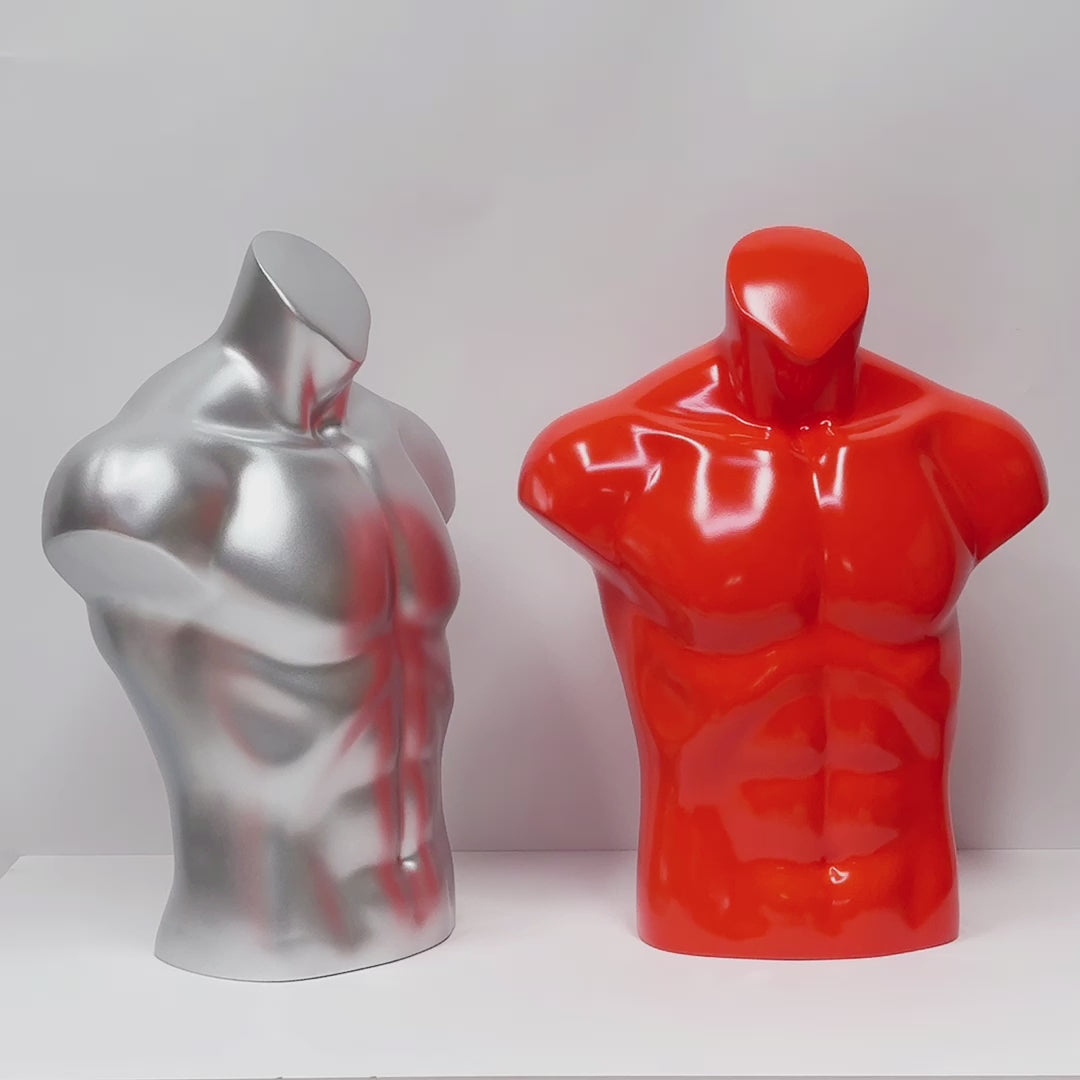 🔥6).With its sleek painting finish and modern design, this male mannequin torso brings a sophisticated and contemporary edge to any retail environment. The combination of its fiberglass construction and trendy color options makes it ideal for upscale boutiques, fashion stores, and even pop-up shops, offering an elegant solution for showcasing your fashion-forward items.