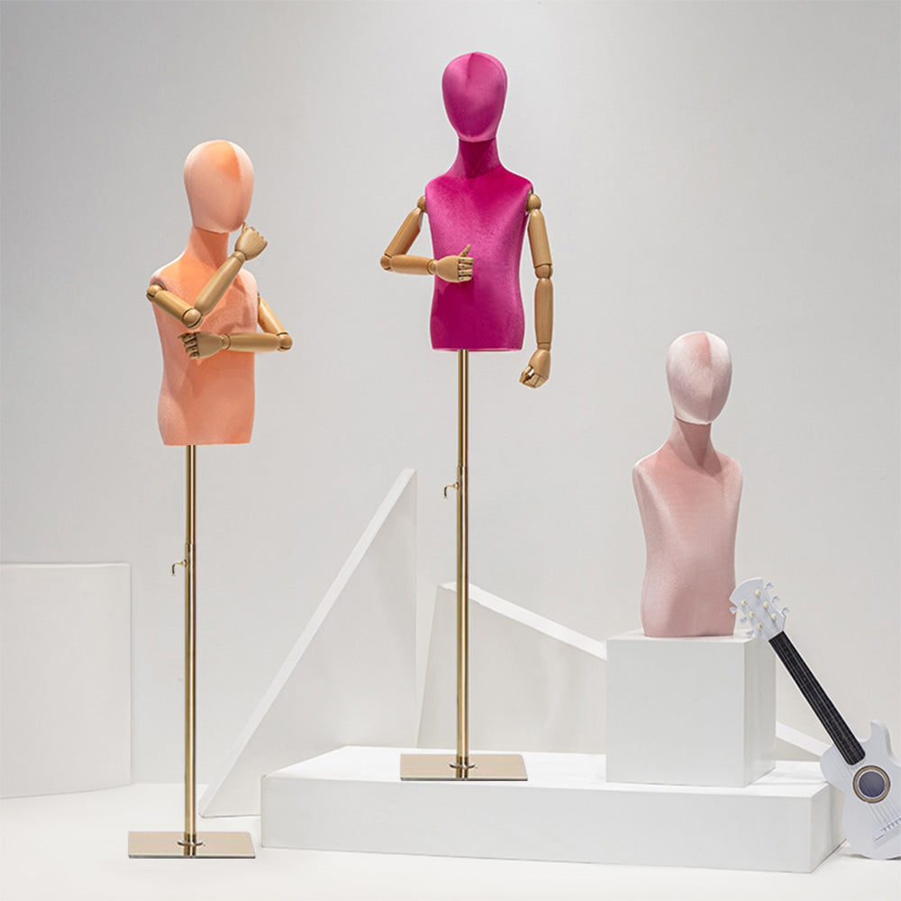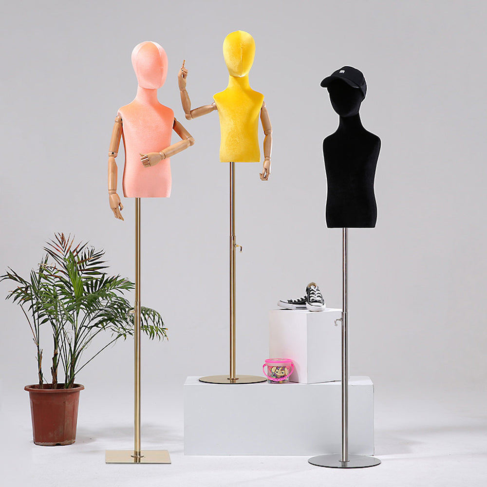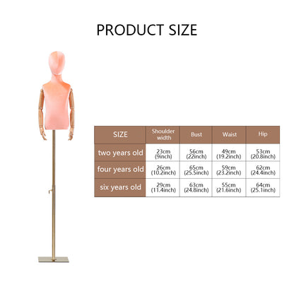 Jelimate Kid Display Mannequin Dress Form Adjustable,Velvet Mannequin Torso With Wooden Arms,Child Half Body Mannequin Kid Model Props,Clothing Store Window Display Baby Mannequin,Child Upper Torso Mannequin Clothing Display Model