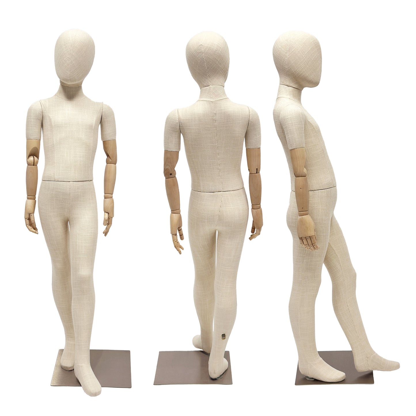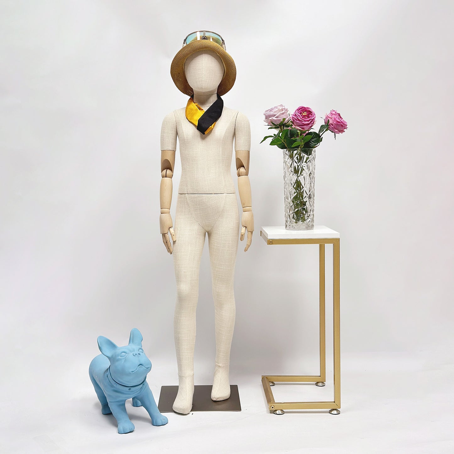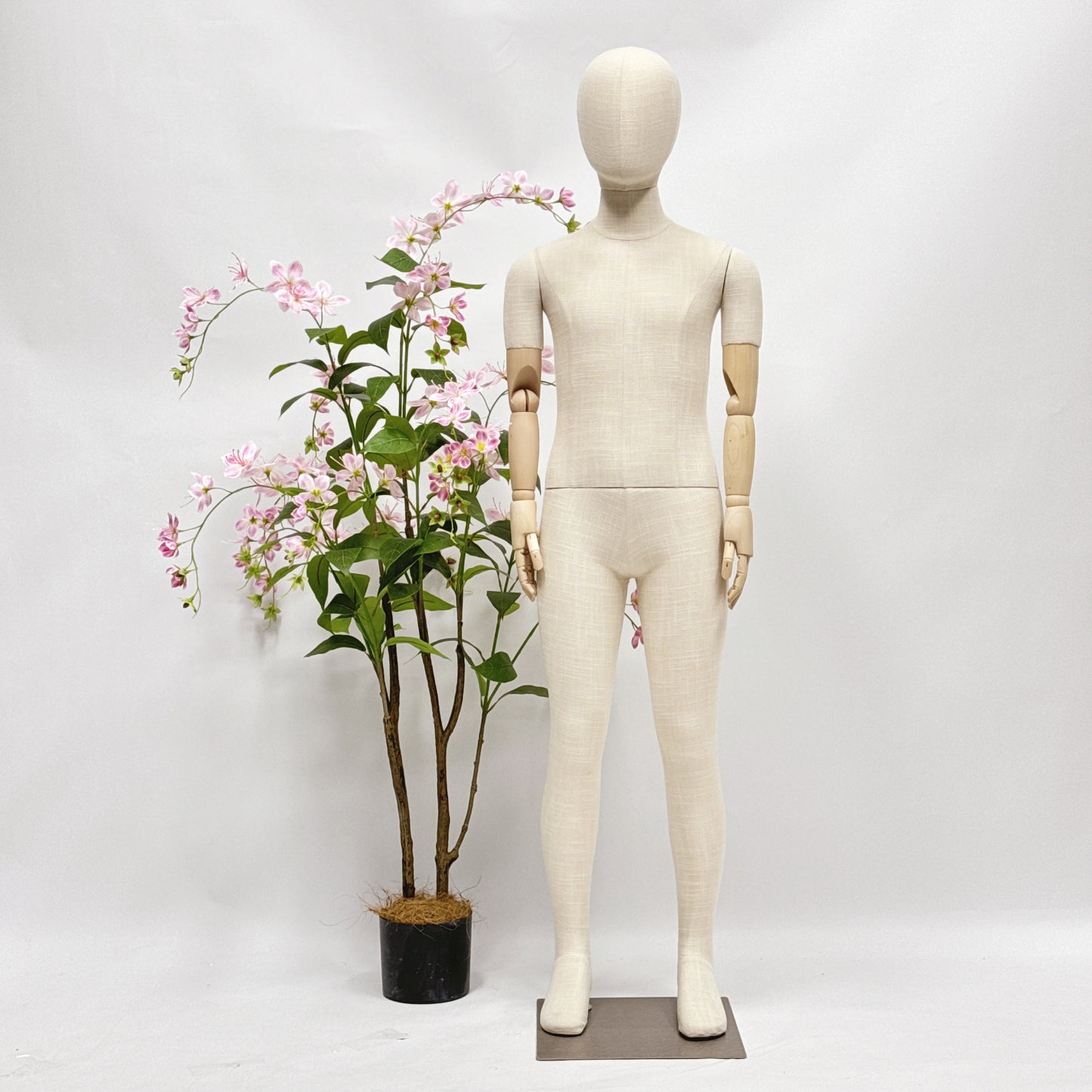 JELIMATE Kids Mannequin Full Body Child Dress Form – Bamboo Linen Fabric Display Model with Adjustable Wooden Arms for Clothing/Boutique/Window/Retail Showcase