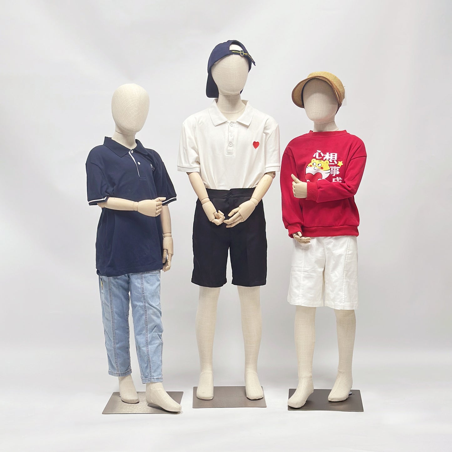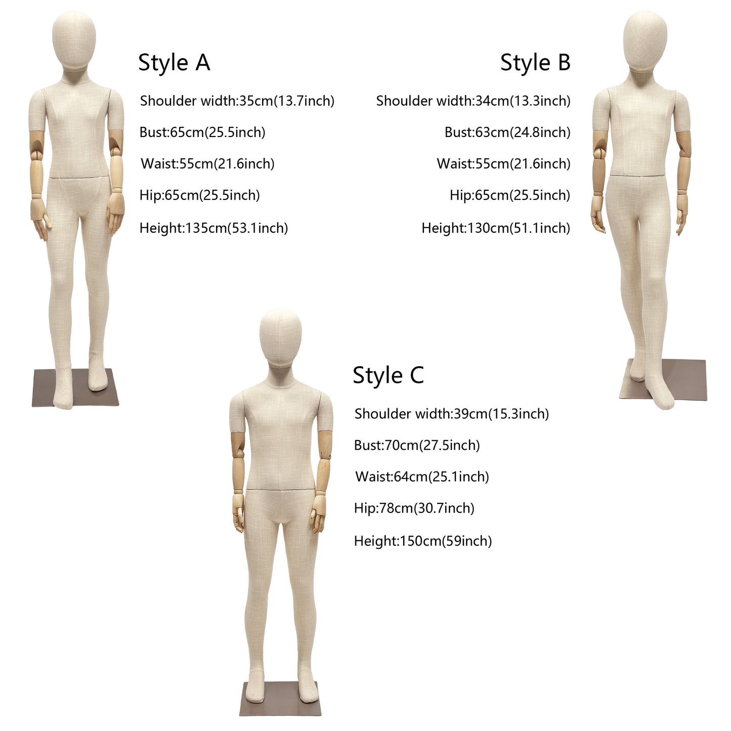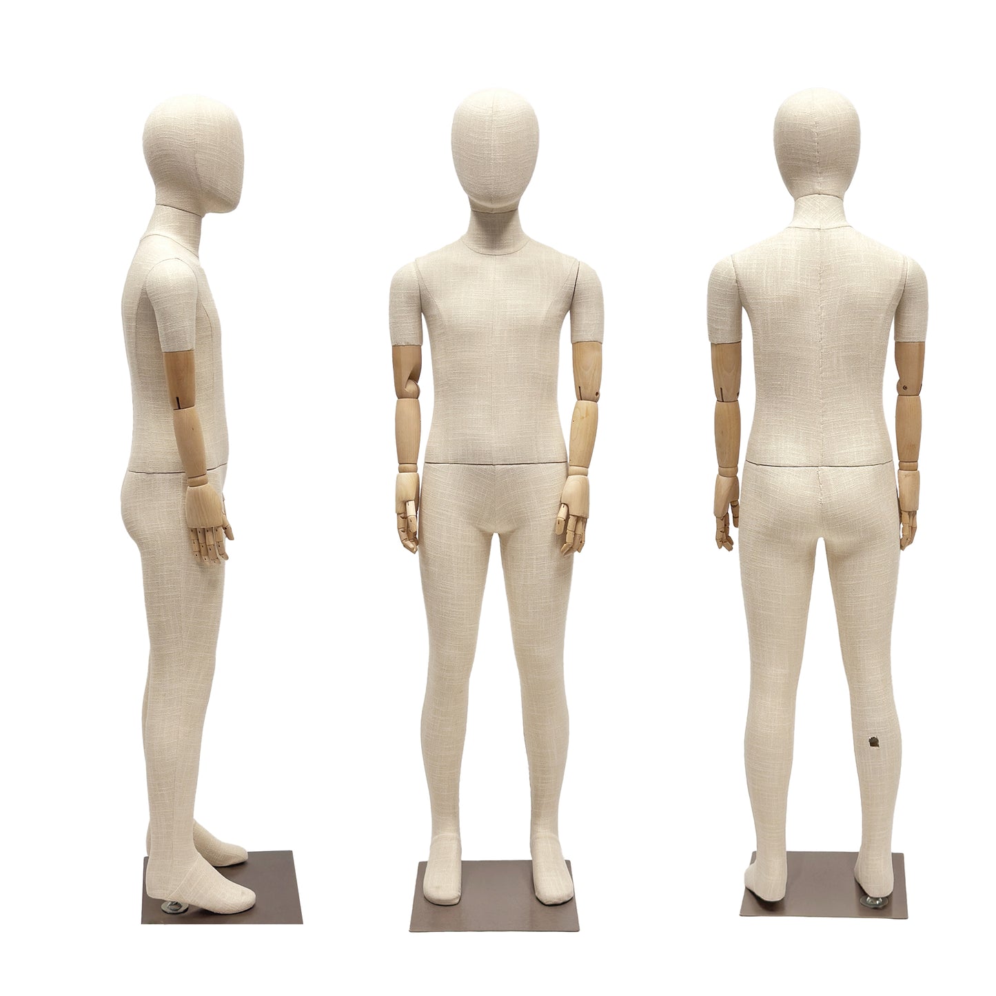 JELIMATE Kids Mannequin Full Body Child Dress Form – Bamboo Linen Fabric Display Model with Adjustable Wooden Arms for Clothing/Boutique/Window/Retail Showcase