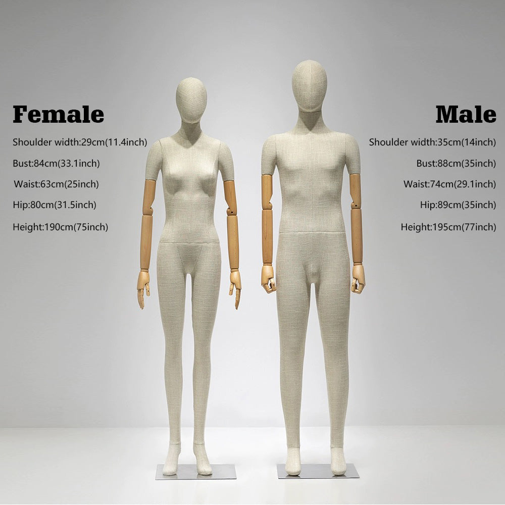 Luxury Grey Bamboo Linen Mannequin | Male & Female Full Body Display Model