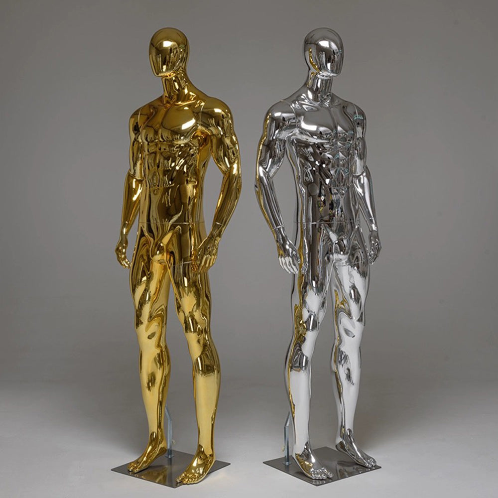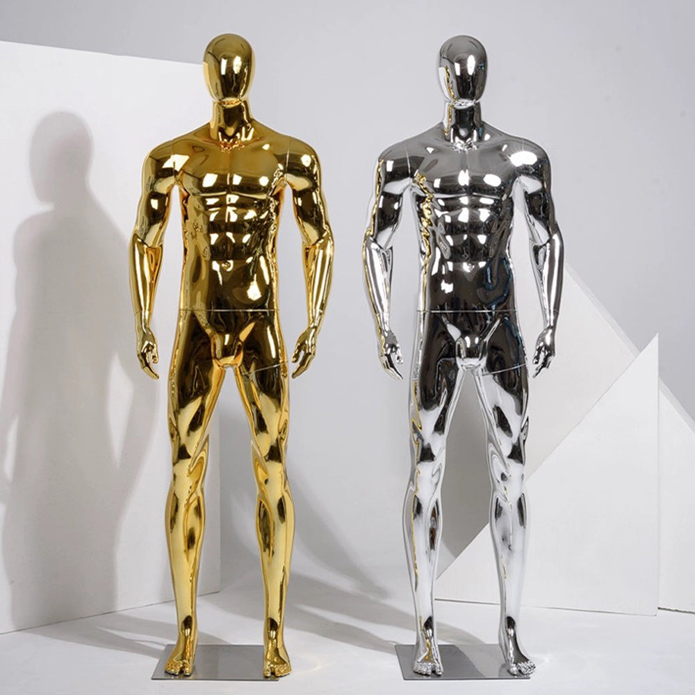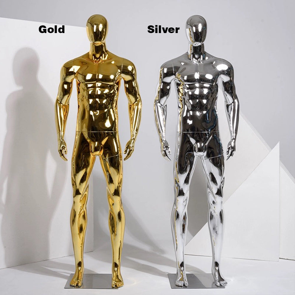 Jelimate Luxury Plated Silver Gold Male Full Body Mannequin,Window Display Chrome Golden Men Dress Form Model,Men Suit Clothing Display Dress Form Props