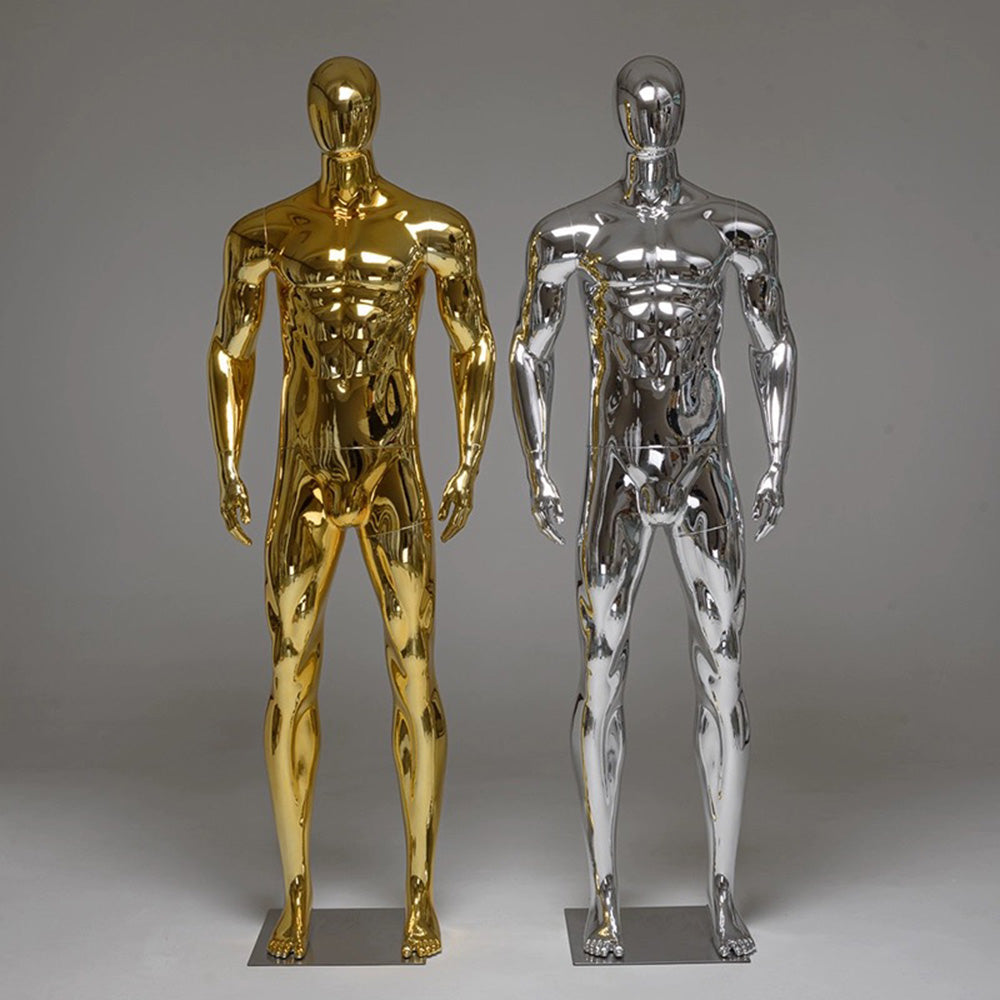 The product is clothing boutique store new fashion adult male full body mannequin,men electroplated gold silver mannequin,have standard mannequin shape, very high end,gorgeous and elegant, the design also are very modern and creative,can display the beautiful of clothing use this model, have silver and gold double colors for your choice,use it to dress up your store can grab customer's attention,use it to dress up your window can make your window become more shiny and gorgeous,use it to dress up your home can make your home become more unique and fresh,use it to dress up your works can present perfect display effect, also can use it to display your products in a window, on a counter, on a display shelf,on the trade show or on the floor,Ideal for sweaters, T-shirts, jackets, suits,coats,blouses, pants,trousers,clothing accessories,tops and bottoms.