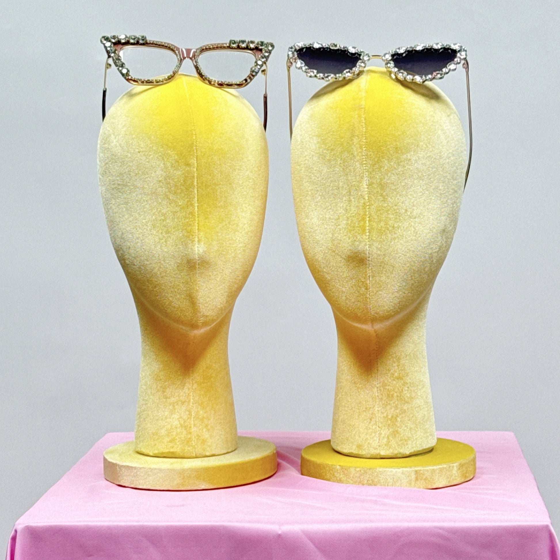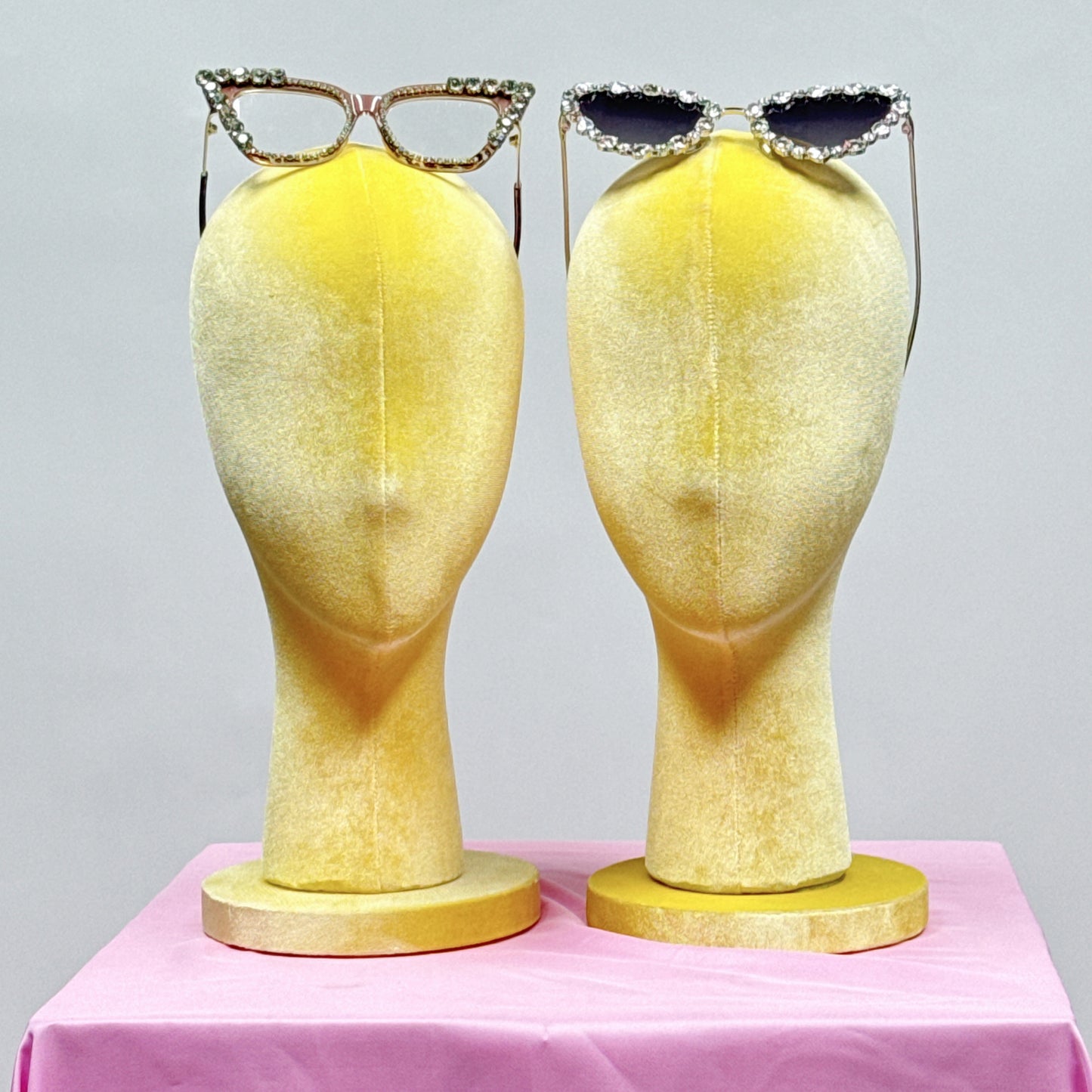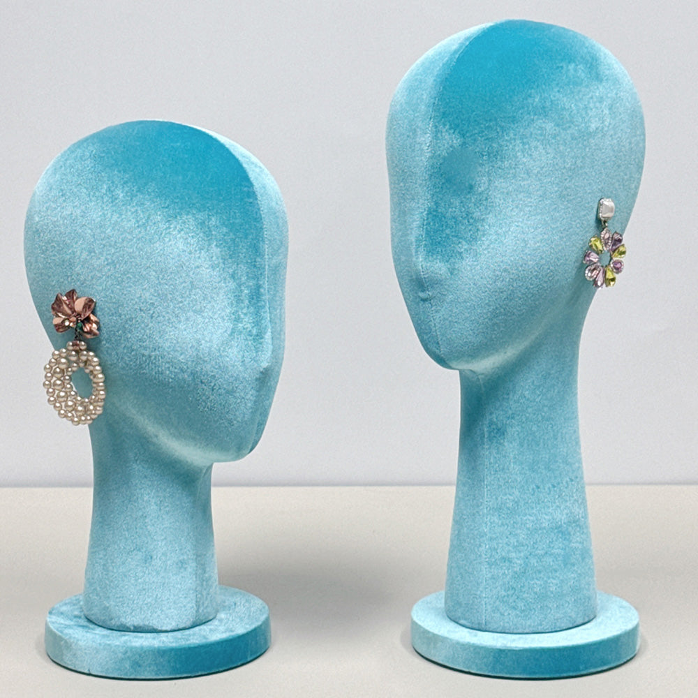 This premium velvet mannequin head is designed for showcasing your finest accessories with style and elegance. Constructed from high quality foam material, can fully pinnable. The mannequin head is wrapped in luxurious velvet fabric, giving a soft and comfortable touch and a refined appearance. With delicate small nose and finely crafted base, it’s perfect for displaying earrings, sunglasses, wig,hat,headphone,headbands, jewelry and more. Whether for a fashion boutique, a window display, or home decor, this mannequin head adds sophistication to any space.