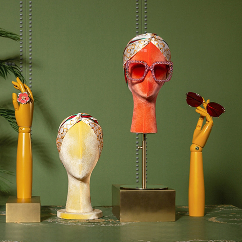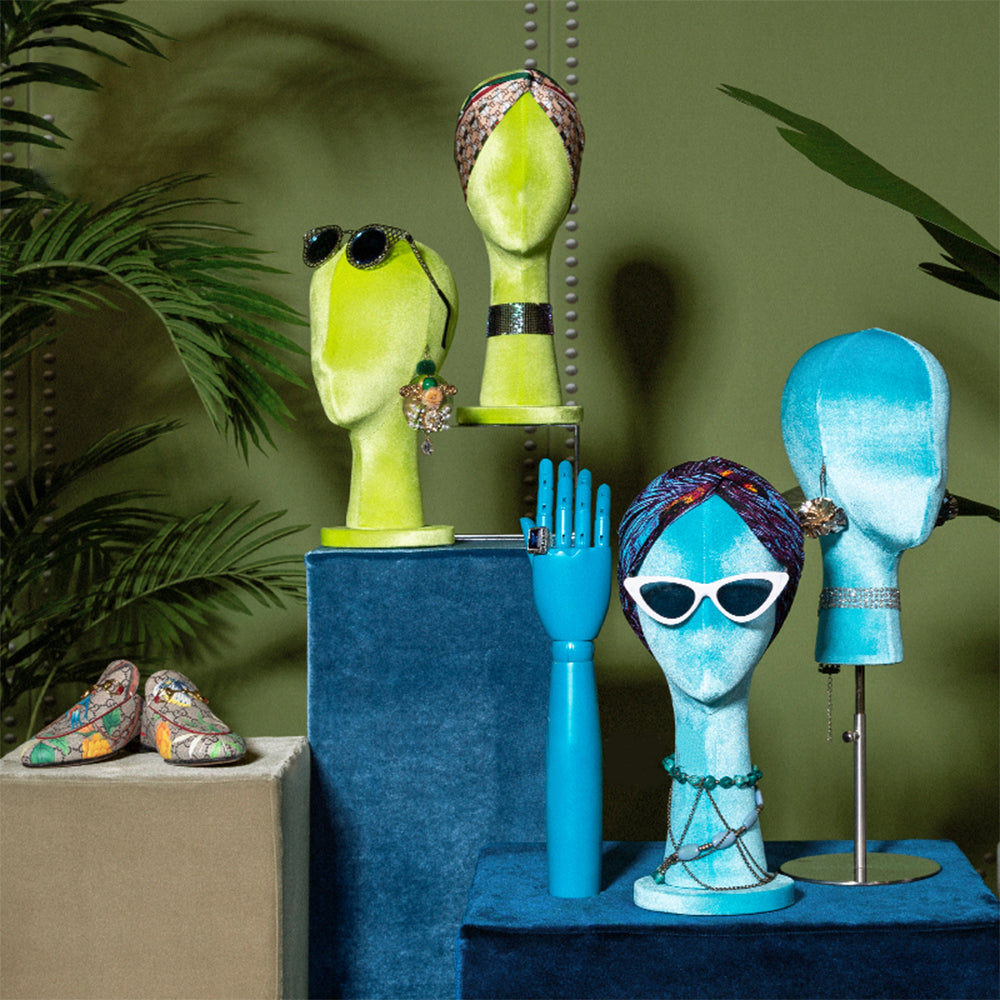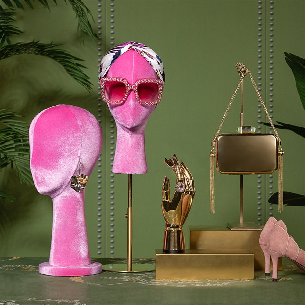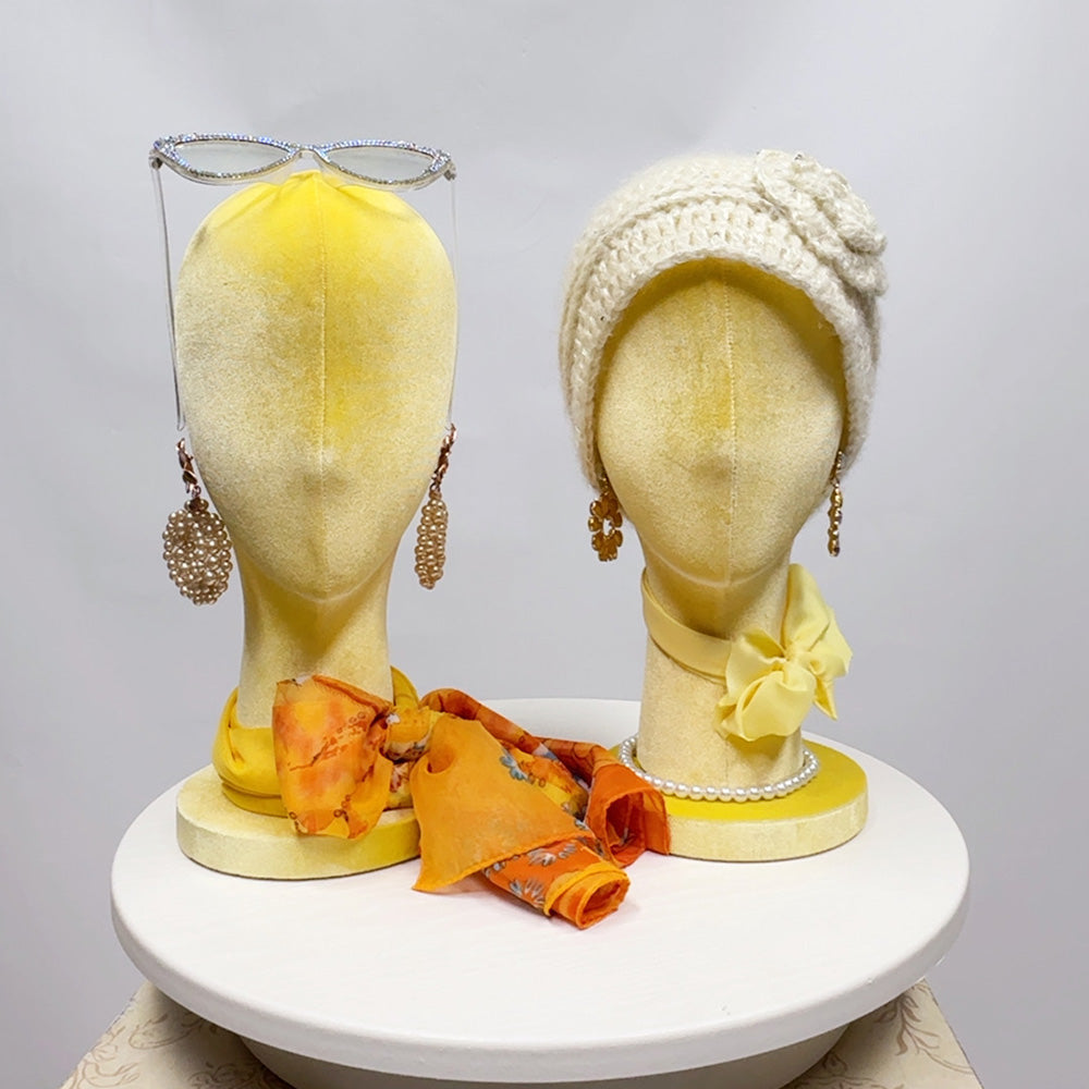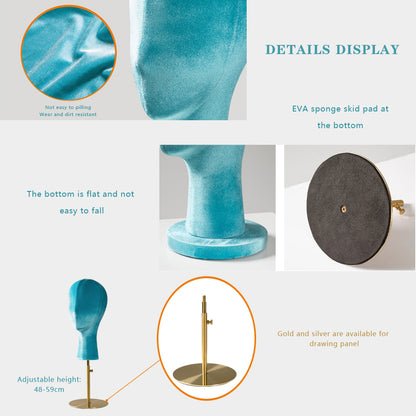 💟2.This high end mannequin head is covered in premium velvet fabric that creates a sophisticated and refined look, ensuring your accessories stand out beautifully,perfect for enhancing the display of your accessories.Made from foam material, this mannequin head provides excellent support for any accessory you wish to display,offering versatility for a range of display needs.