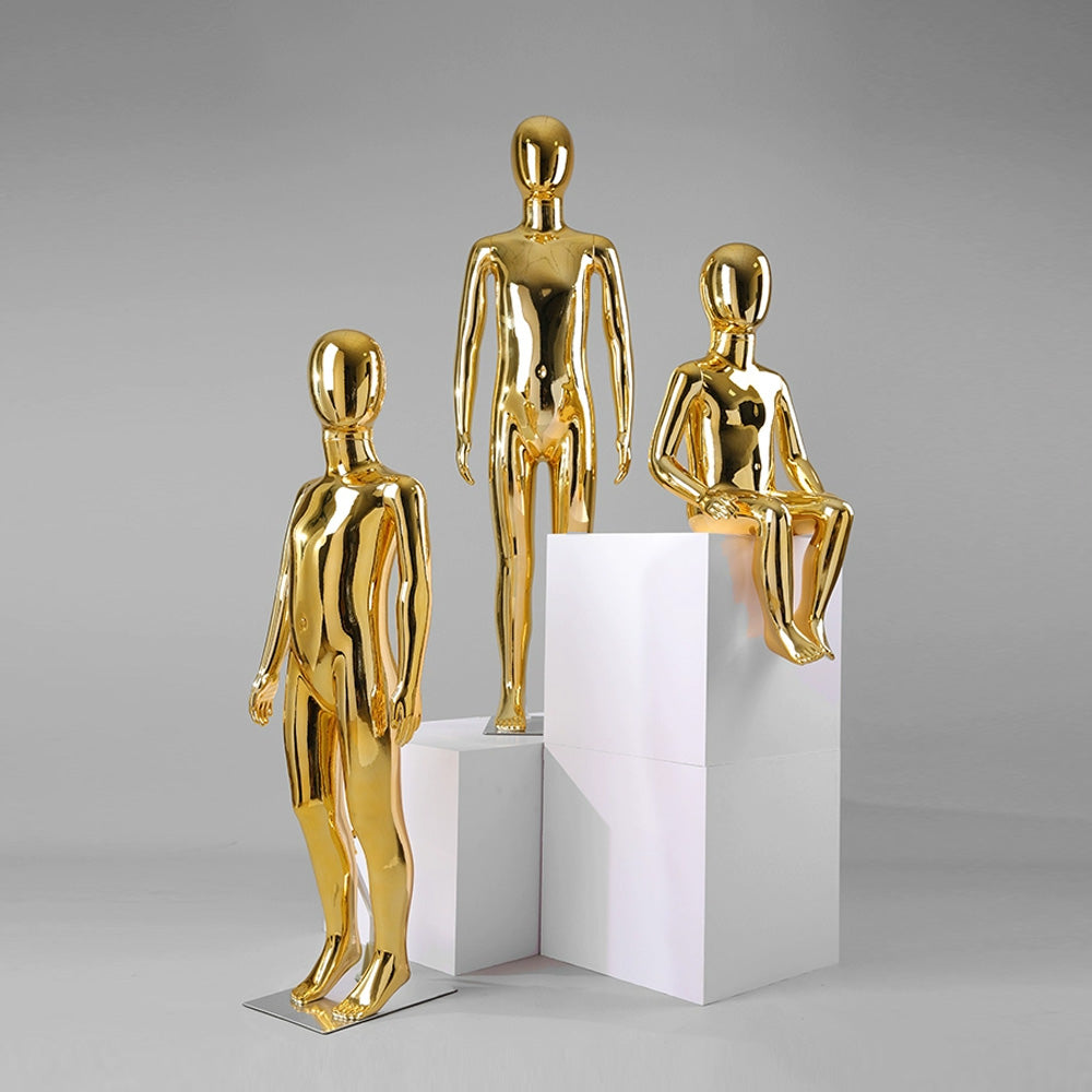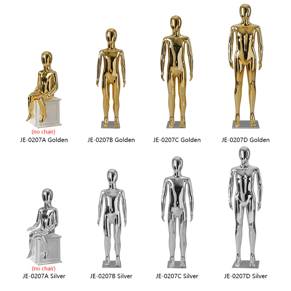 Jelimate High End Full Body Glossy Silver Gold Mannequin Kid,Luxury Window Child Dress Form Model,Golden Chrome Children Clothing Display Mannequin Baby Model