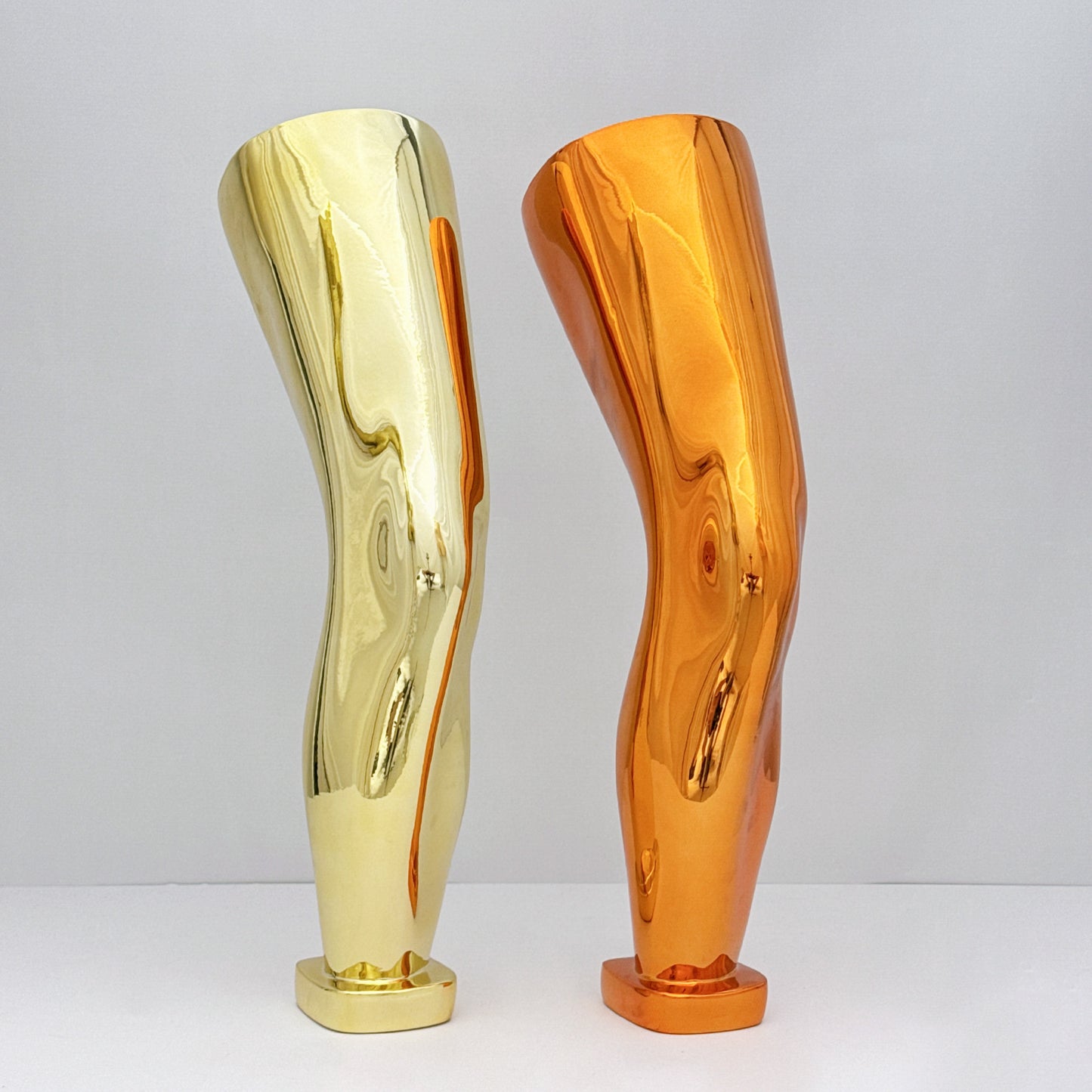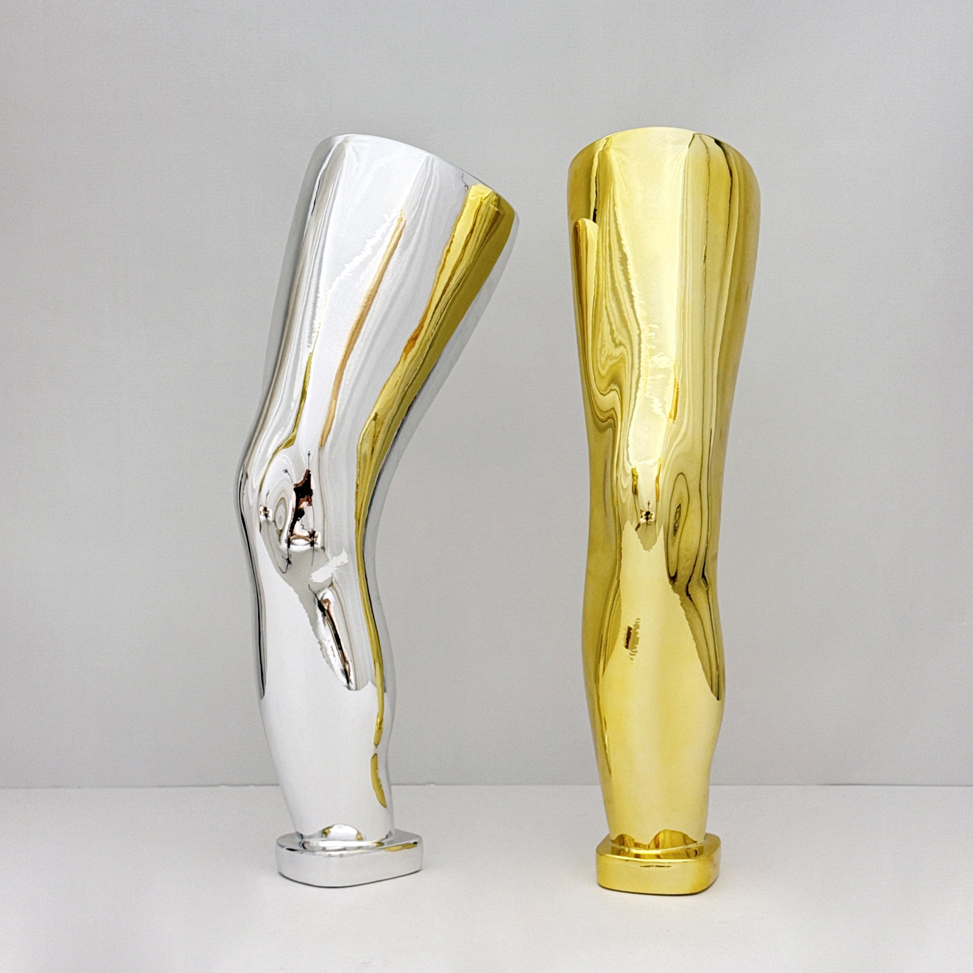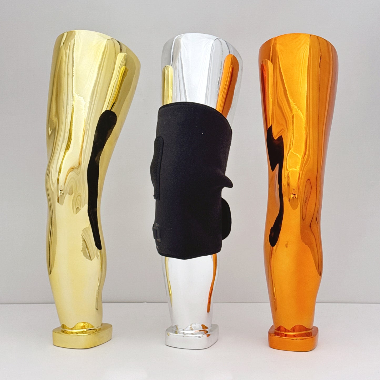 Jelimate Male Left Leg Display Stand for Knee Brace Gold-Plated Fiberglass Orthopedic and Sports Store Use