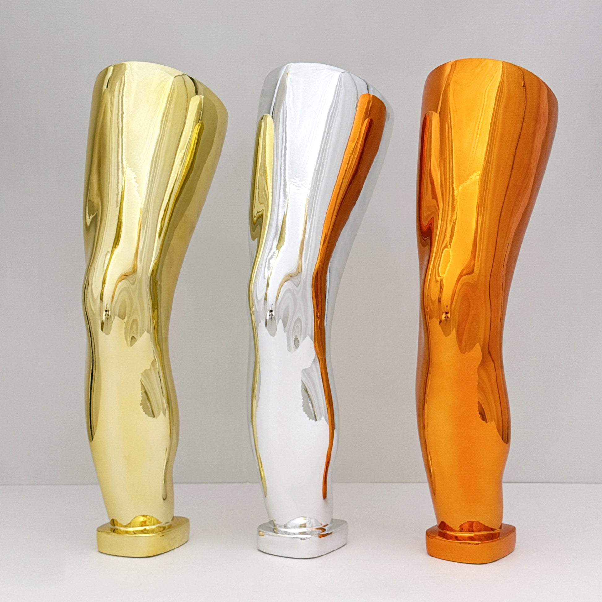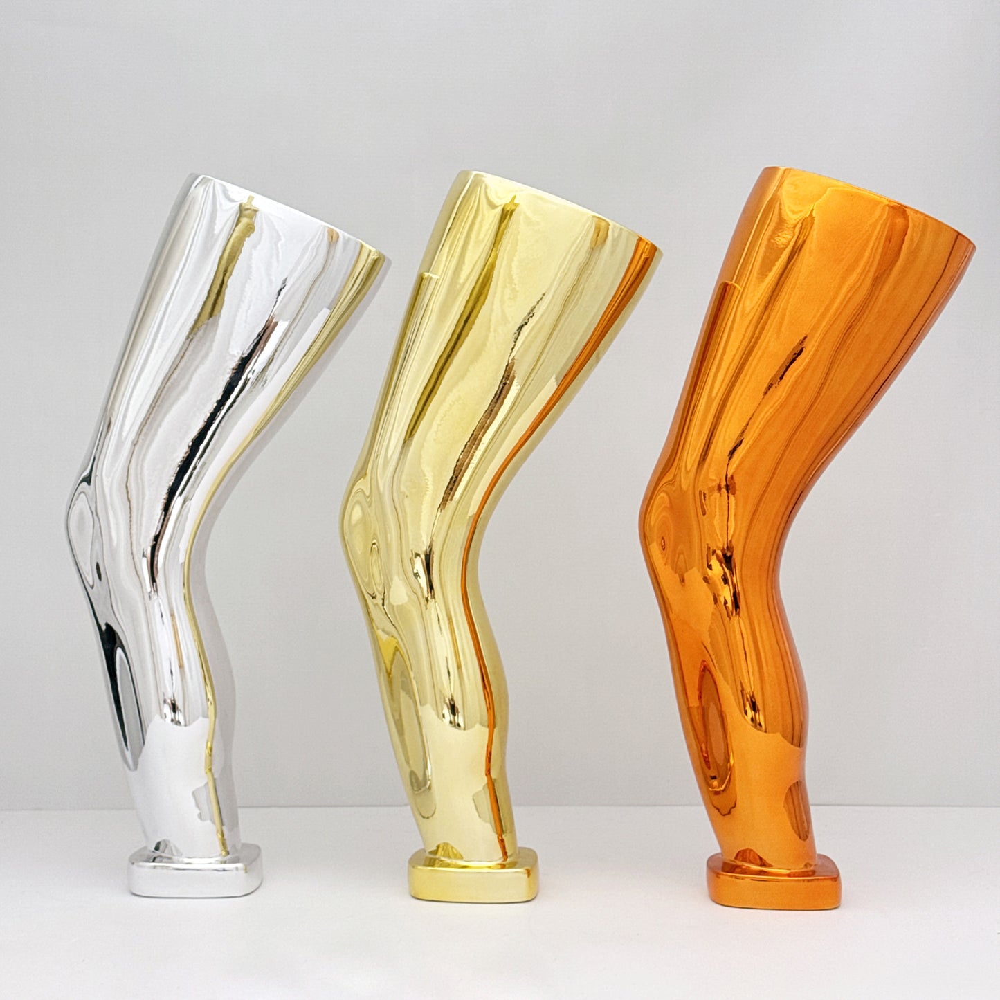 Showcase knee braces, ankle supports, and compression gear with clarity and style. The Jelimate Male Left Leg Display Stand features a sleek electroplated fiberglass finish and a realistic anatomical shape, ideal for medical supply stores, sports rehab centers, clinics, or e-commerce photo setups. Lightweight and compact, it’s perfect for shelf, counter, or trade show displays, helping your products stand out with a clean, professional presentation.