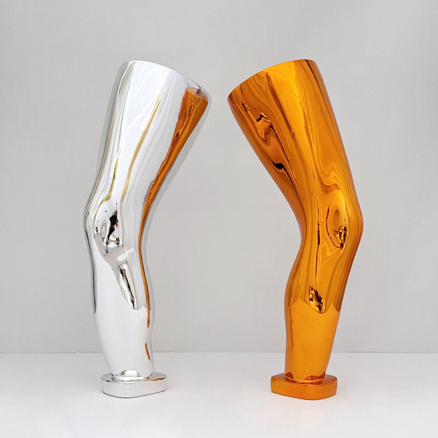 Jelimate Male Left Leg Mannequin Display Stand – Electroplated Fiberglass for Knee Brace, Orthopedic & Sports Store Use