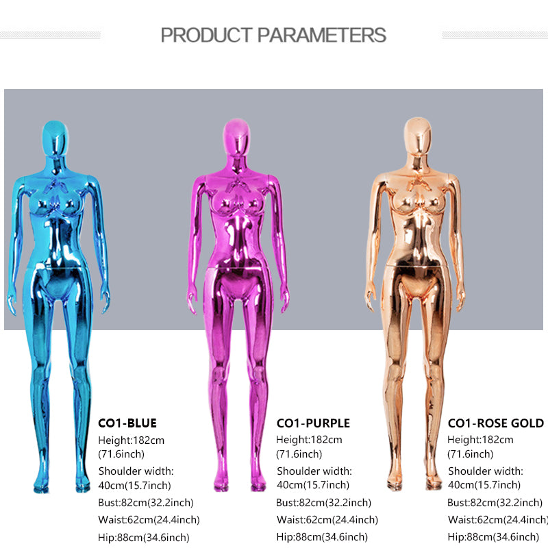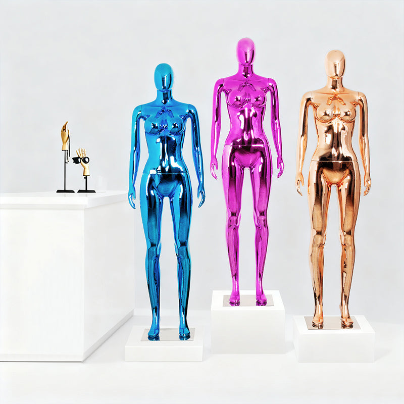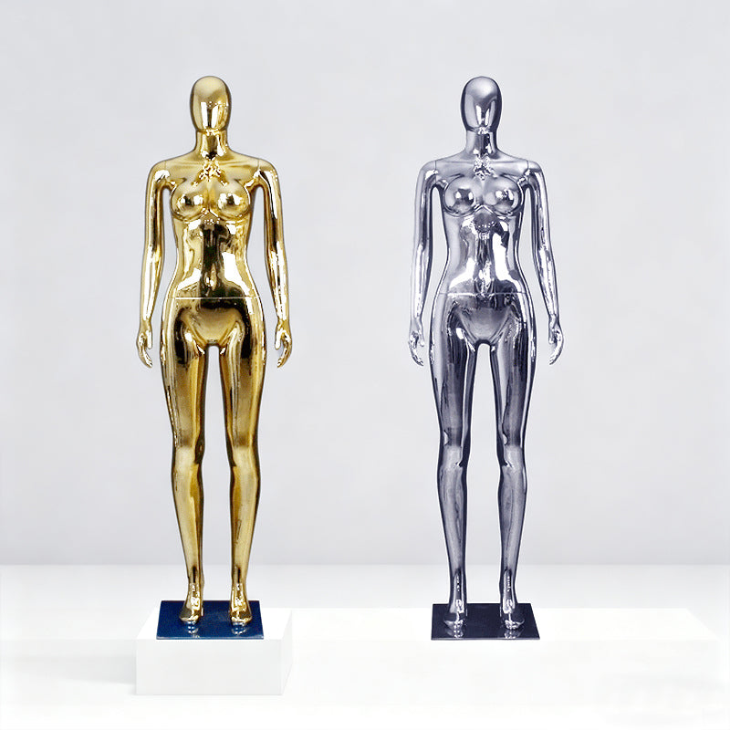 Plus - Size African - Style Female Mannequin, a full - body display model crafted from durable plastic. It's ideal for fashion brand window displays, perfectly showcasing women's apparel. Featuring a curvy African - inspired design with enhanced hips, a full - body soft light plating for a luxurious glossy finish, and vibrant color options, this mannequin offers an eye - catching and stylish way to present your clothing, drawing customers' attention effectively.