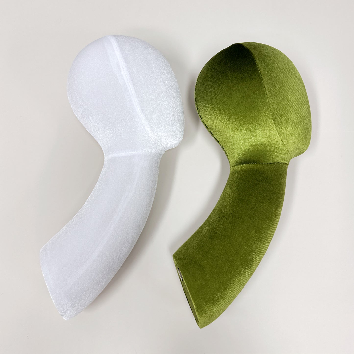 Soft-touch velour in a striking green-and-white combination adds a luxurious finish to any display—perfect for upscale salons, studios, and boutiques.