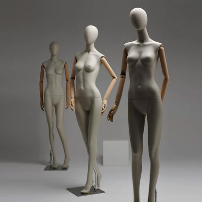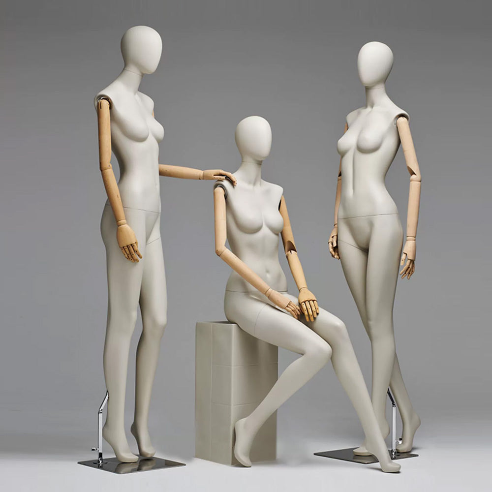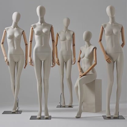 Jelimate Realistic Female Full Body Display Mannequin,Beige Female Full Body Mannequin With Wooden Arms,Clothing Store Female Dress Form Mannequin,Window Display Female Full Body Model,Bridal Shop Wedding Dress Mannequin JE0119