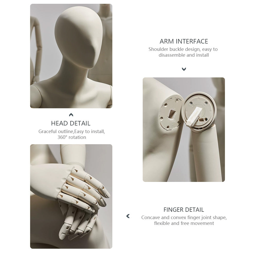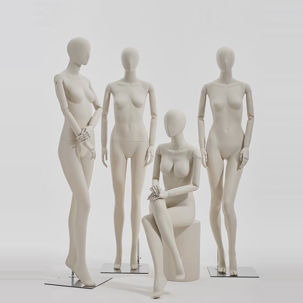 💟1).Crafted from high-quality fiberglass, these full body female mannequins are lightweight yet durable, ensuring long-lasting use in commercial and residential spaces. Their smooth, refined surface enhances clothing presentation, making garments appear flawless.Choose from three elegant standing poses female full body models and one seated pose full body model, allowing for diverse presentation styles. Whether highlighting apparel, accessories, or complete outfits, these mannequins add a refined aesthetic to any retail space.