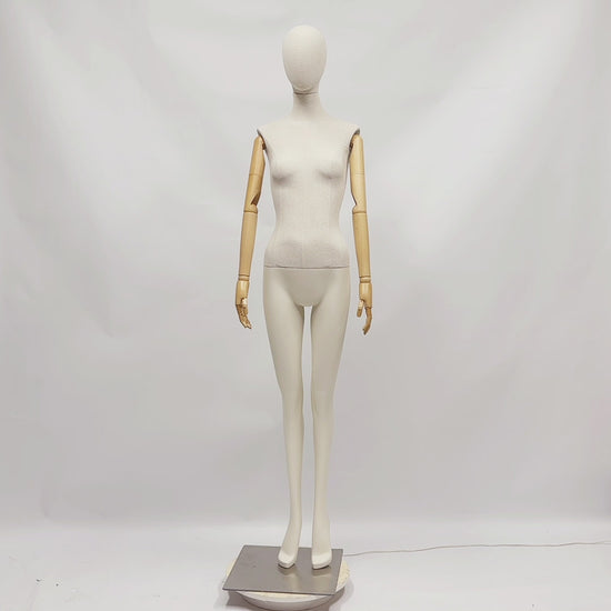 💟1).This female full body mannequin offers three pose options,giving you the freedom to create dynamic and versatile product displays. Whether you're showcasing clothing or accessories, the mannequin provides a stylish solution for every display need.Crafted with the finest linen fabric in a luxurious off-white color, this mannequin has a sophisticated, polished appearance that perfectly complements the latest trends in fashion. The high-quality material provides a natural and organic texture that enhances the visual appeal of your store or home.