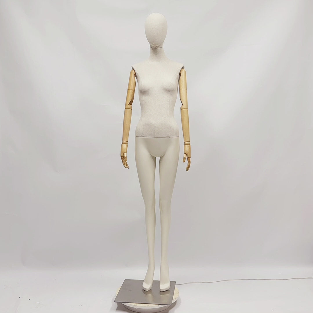 Jelimate Realistic Female Full Body Mannequin Dress Form,Upper Body Wraping Linen Fabric Bottom Painting Leg,White Beige Mannequin Female Full Body Model,Female Full Body Display Mannequin