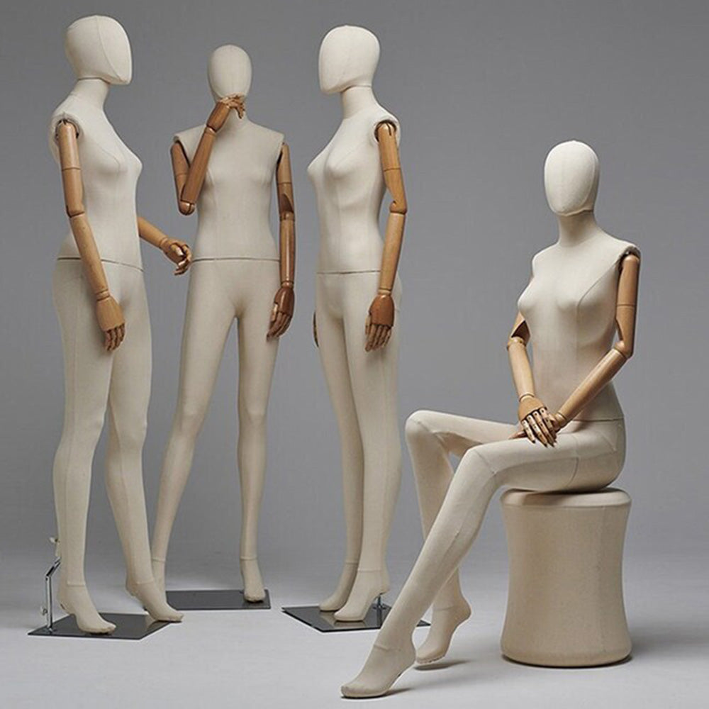 👏3.Our high quality female and male full body mannequins are crafted from premium burlap fabric, featuring stylish wooden hands and a sleek silver square base. These mannequins are available in eight different styles, making them a versatile choice for showcasing men’s and women’s apparel as well as accessories like scarves, hats, and jewelry. The burlap material provides a natural, earthy texture that pairs well with a wide range of fashion styles, while the elegant wooden hands and silver base add a modern, luxurious touch. Perfect for both in-store displays and eye-catching window presentations, these mannequins help you create a sophisticated atmosphere that draws in customers. Upgrade your boutique’s visual merchandising with these timeless display pieces.