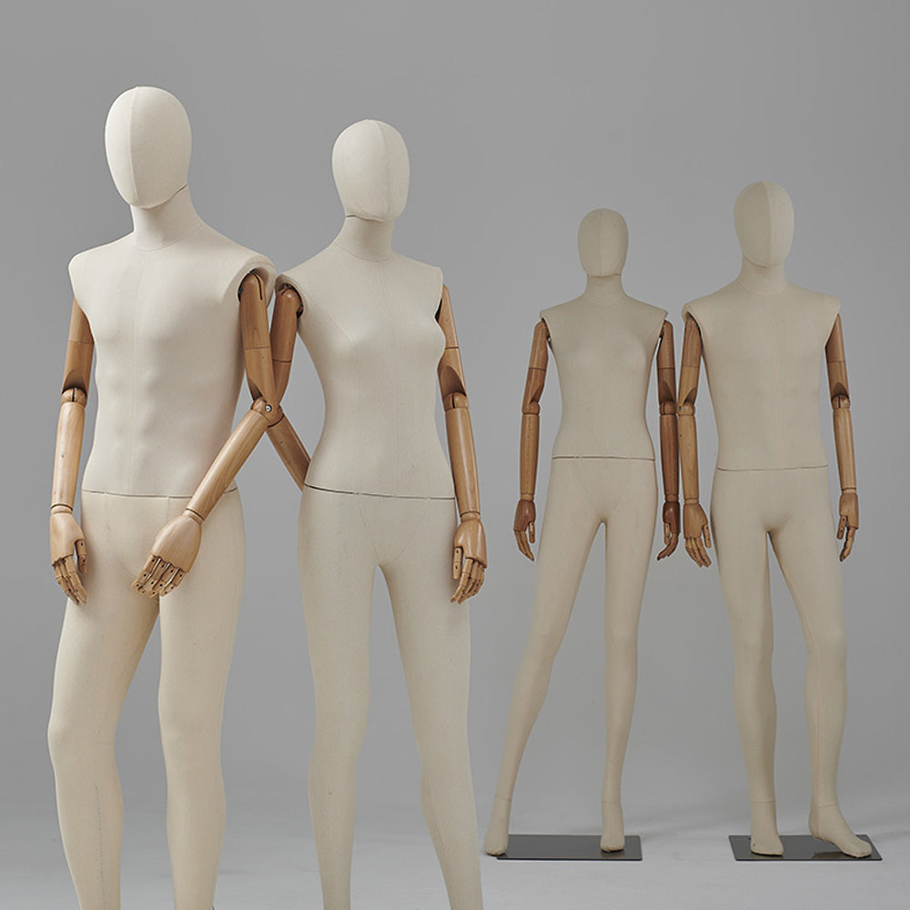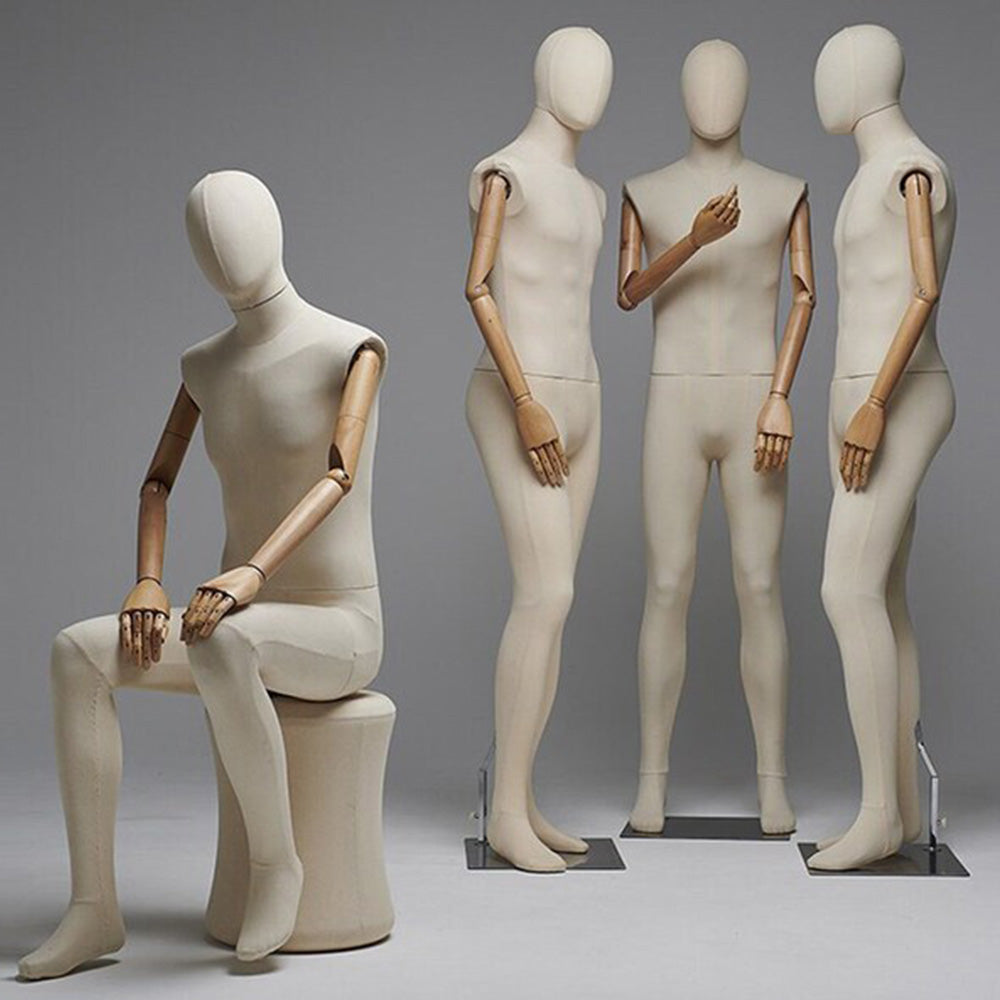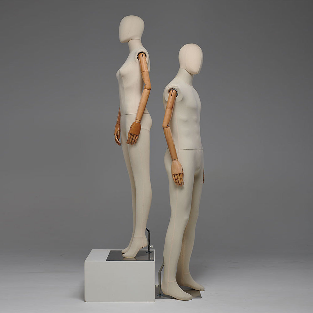 Jelimate Realistic Male and Female Full Body Mannequin,Linen Fabric Beige Mannequin Torso With Wooden Arms,Women and Men Full Body Display Mannequin Dress Form,Clothing Shop Clothes Display Model JMFF02