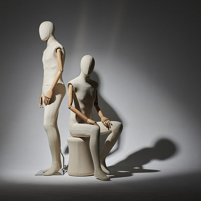 Enhance the visual appeal of your boutique with our premium JMFF02 full body male and female mannequins, made from high quality burlap fabric. Featuring sophisticated wooden hands and sleek silver square bases, these mannequins offer a stylish and durable solution for showcasing your latest clothing and accessories. Available in eight versatile styles, they are perfect for both in-store displays and stunning window showcases. The burlap fabric adds a natural texture that complements any collection, while the wooden hands give the mannequins an elevated, high-end look. Whether you’re displaying dresses, suits, or accessories like handbags and jewelry, these mannequins will instantly attract attention. Upgrade your boutique’s display with these elegant, functional pieces that perfectly highlight your products.