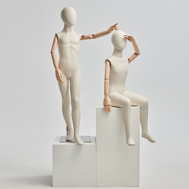 Elevate your boutique's style with the Jelimate high end painting children full body mannequin,expertly crafted for showcasing luxury children's clothing. This stunning mannequin features a sleek, modern design with a smooth spray-painted finish that exudes elegance and sophistication. The lifelike proportions and exquisite attention to detail ensure that every outfit is displayed beautifully, captivating your customers. Complete with premium wooden hands, this mannequin adds a touch of warmth and authenticity to your presentations, making it perfect for highlighting the latest trends in high-end children's fashion. Transform your storefront and create a compelling shopping experience that draws in discerning parents seeking the best for their little ones.