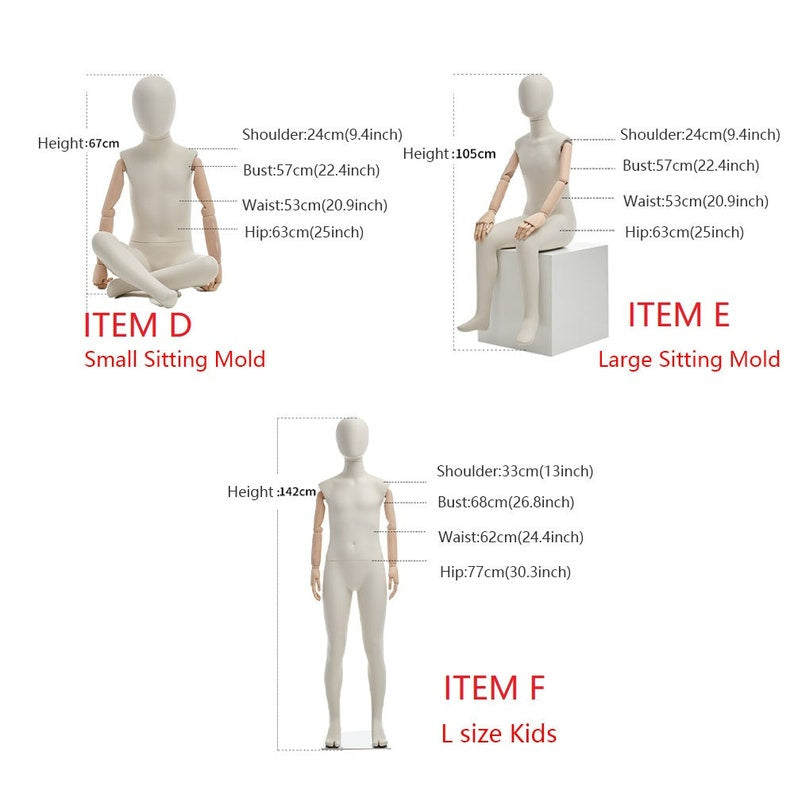 🔥1).Introducing the Jelimate high grade spray-painted kid full body mannequin with wooden hands, the ultimate solution for luxury children's clothing boutiques. Designed with a contemporary aesthetic, this mannequin features a flawless spray-painted surface that enhances the vibrant colors and intricate designs of your clothing line. Its full-body structure allows for versatile styling, while the realistic wooden hands provide a charming and refined touch, perfect for displaying accessories or delicate details. Whether showcasing elegant dresses or trendy outfits, this mannequin will capture the attention of shoppers and elevate your brand's image. Make a statement in your store and offer a visually stunning display that reflects the quality and style of your luxury children's collection.