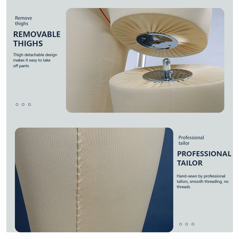 - Removable Arms & Thigh Section – Customize your dress form configuration for different garment types and draping techniques