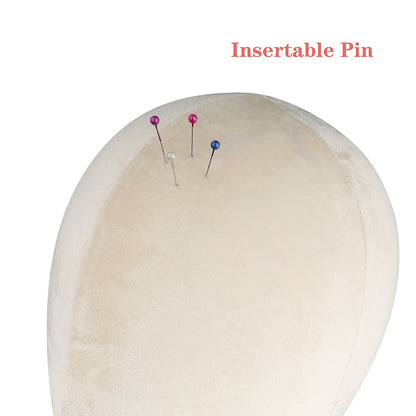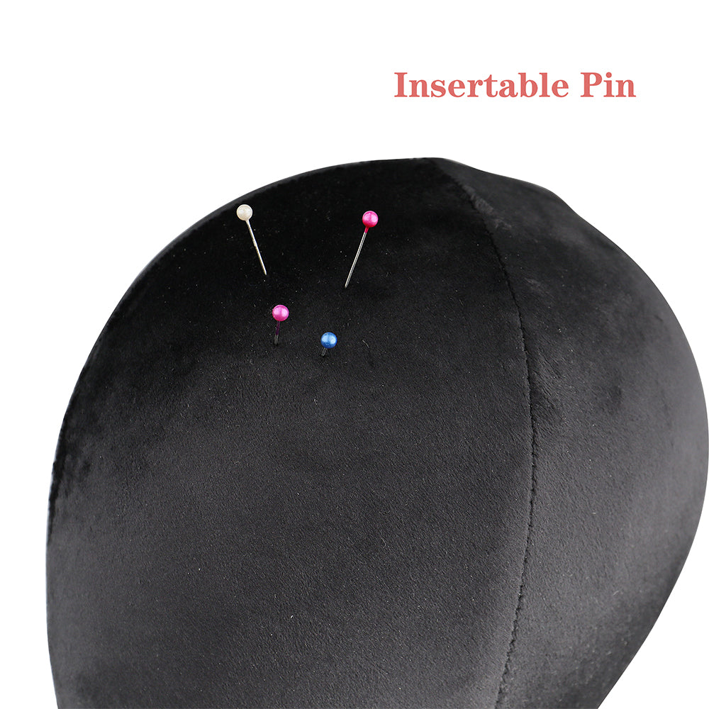 👏6.As it is soft foam material and cover velvet fabric, so the head mannequin with a face mask on it will be also ok, you can pinnable to the ear position, and then it will use it for face mask display,Just put your hat display in your showroom or bedroom.